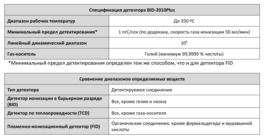 - Стабильность работы. Несмотря на высокую чувствительность, BID является очень устойчивым к высоким концентрациям анализируемых образцов.