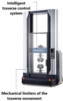 With the help of movement limiters, the traverses set the range of permissible movements. This prevents grippers from colliding during the test or during preparation for it. Limiters have a spring mechanism of the “clip” type, thanks to which they are reliably fixed on the guides.