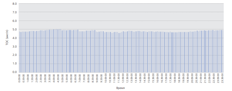 • Диапазон измерения TOC от 0 до 2000 мкг/л удовлетворяет разнообразным потребностям анализа.